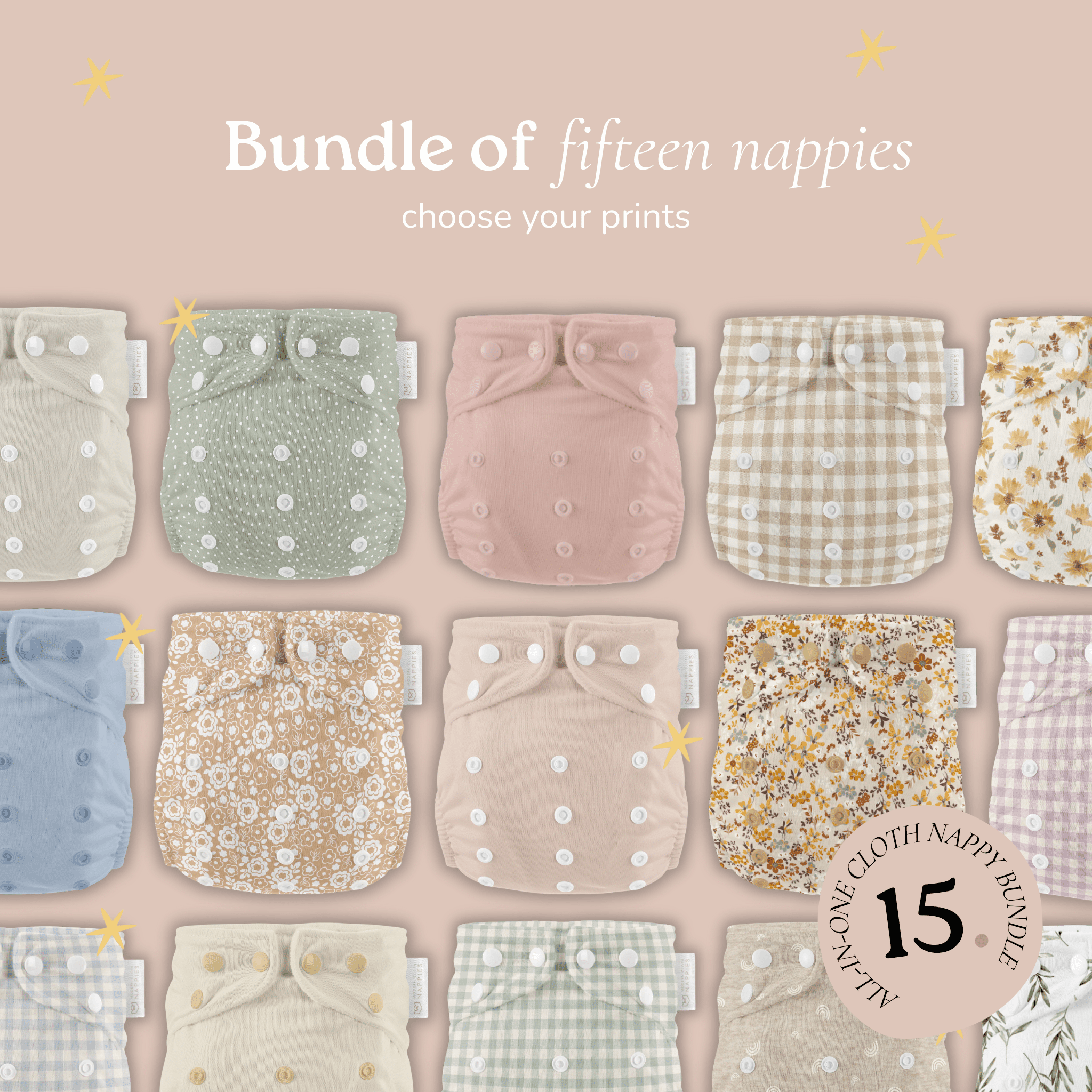 Mix & Match One Size Nappy 'Stash Builder' Bundle - 15 Nappies